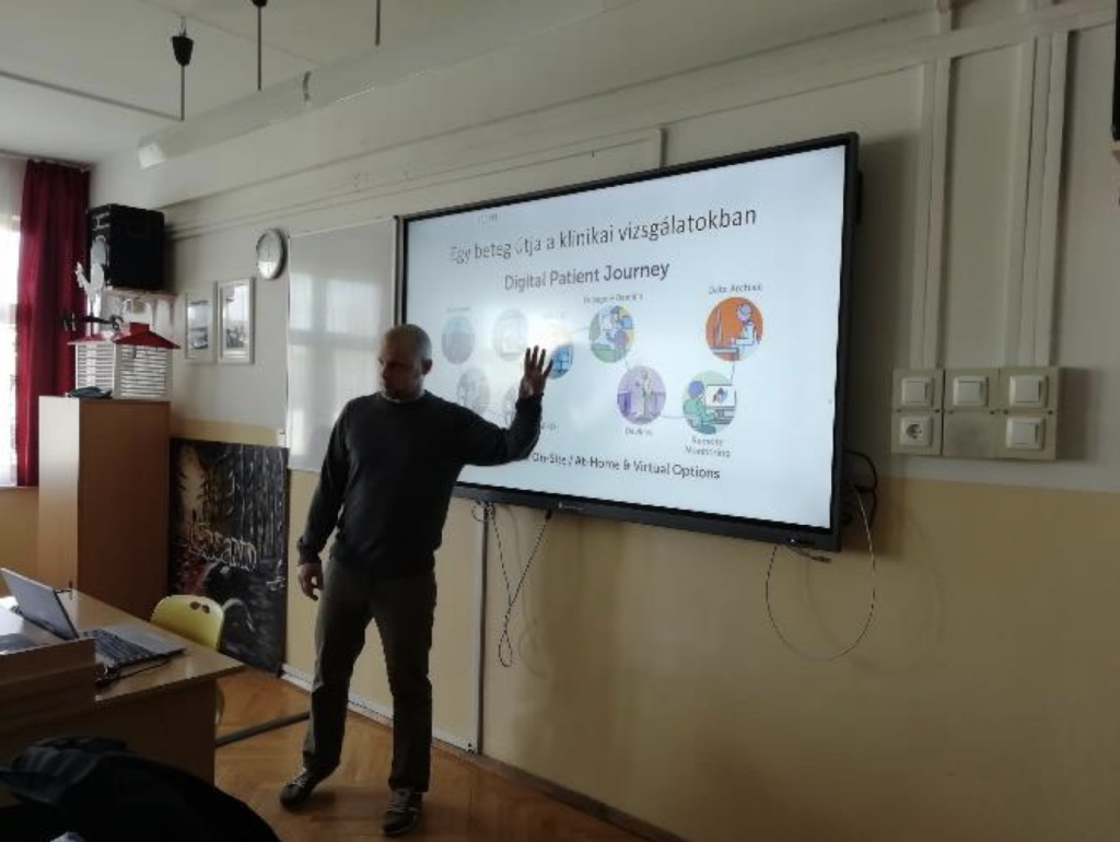 Március 28-án Dr. Juhász Gábor, egykori neumannos diák tért vissza iskolánkba, hogy a 11.-es és 12.-es biológia-kémia szakos diákoknak egy interaktív előadás keretében bemutassa a munkáját, a gyógyszerkutatás és a gyógyszeripar működését. Az előadás végén a diákoktól számos, a témába vágó szakmai kérdés érkezett, többek között az aktuális kutatásokra, a koronavírusra és az elhelyezkedési lehetőségekre vonatkozóan, mely szintén emelte az előadás színvonalát.