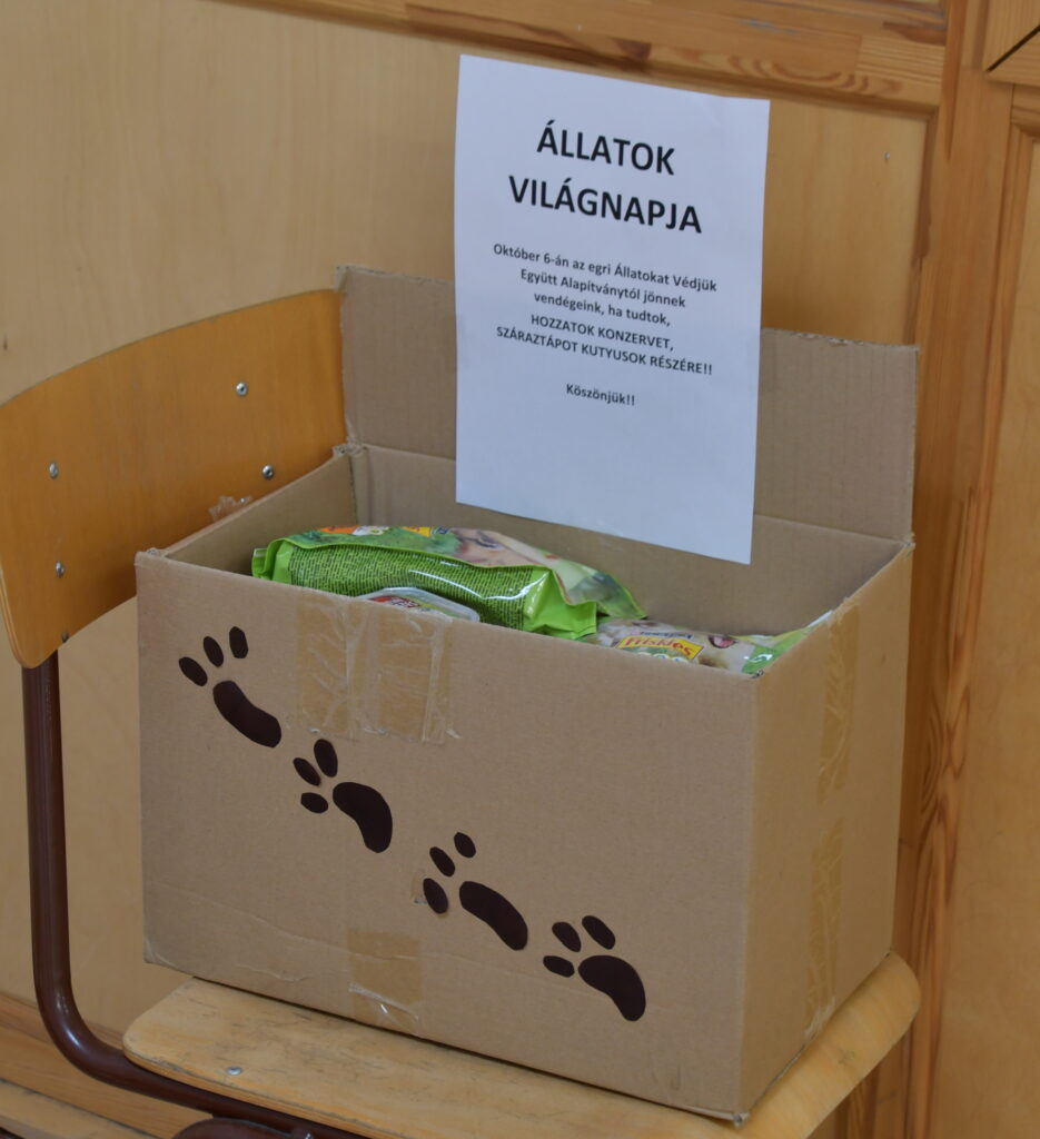 Az állatok világnapja alkalmából iskolánkban jártak és három osztály számára tartottak bemutatót az Állatokat Védjük Együtt Alapítvány munkatársai. Diákjaink érdeklődve hallgatták a felelős állattartásról szóló előadást, melyben két nehéz sorsú kutya életútját és is elmesélték. Állateledelt gyűjtöttünk az elesett kutyusok számára.